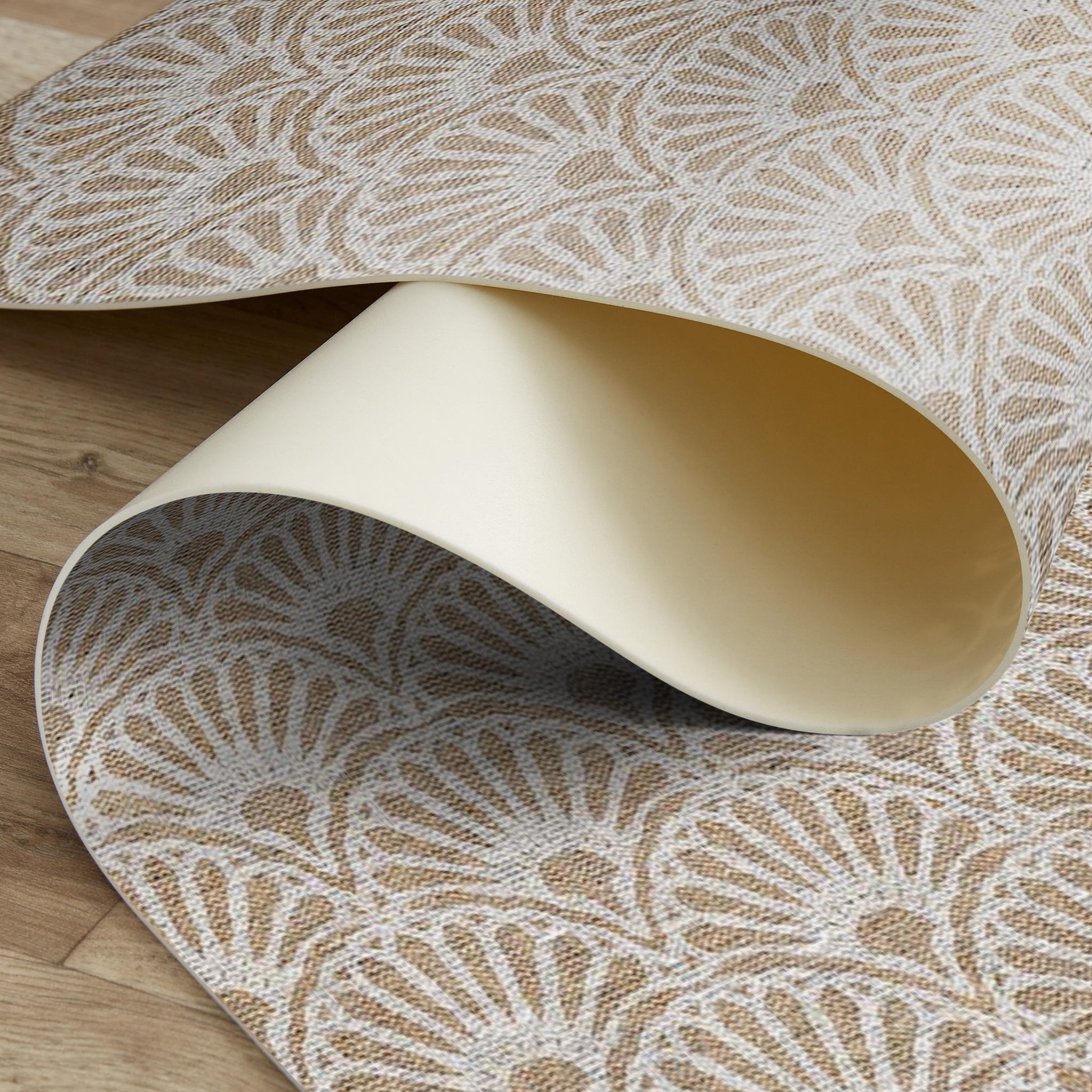 Dress up any room or corner in your home with our beautiful and stylish vinyl floor mats. This beautiful design, Pearl is inspired by Art Deco shapes and designs combined with nature or more specifically simple fabric texture and neutral colors. Designed to be practical and versatile home décor our vinyl floor mats are anti-slip, pet-friendly, durable, and waterproof. Explore this earthy, simple-look stunning design.