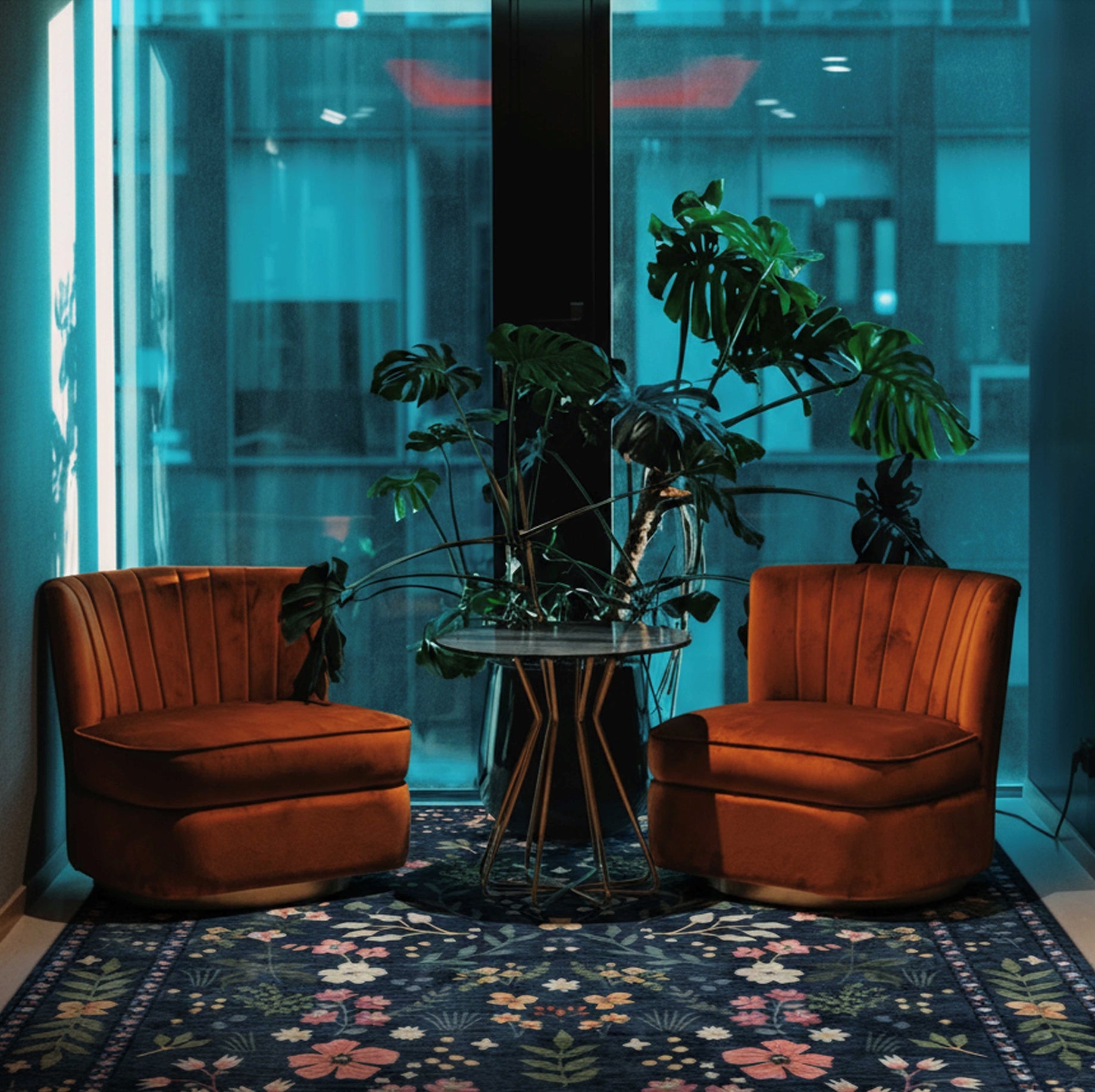 Inspired by elegant floral fabric and traditional rug designs